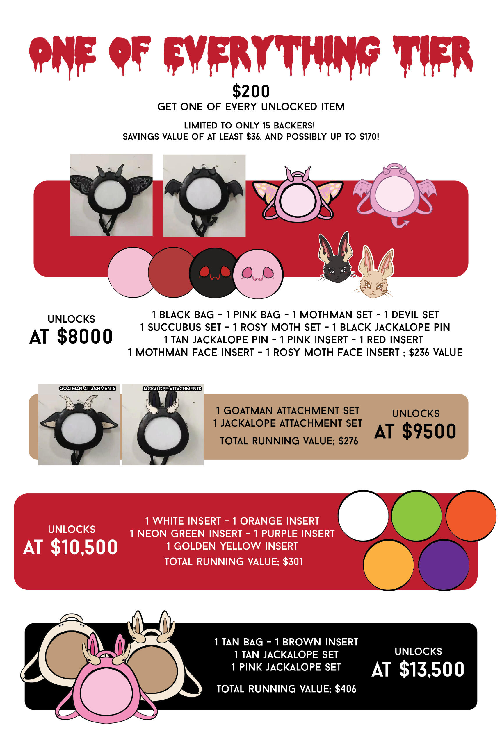There are three bag colours, eight insert colours, two printed insert options, and nine total attachment options across all three bag colours.